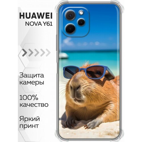 Чехол для Huawei Nova Y61 4G с принтом Смешные капибары (Хуавей Нова У61 4G)