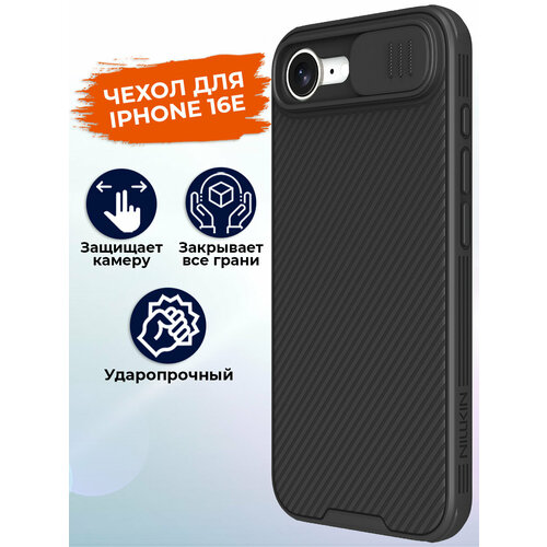 Чехол для iPhone 16e Nillkin противоударный, с усиленными углами и защитой камеры, черный