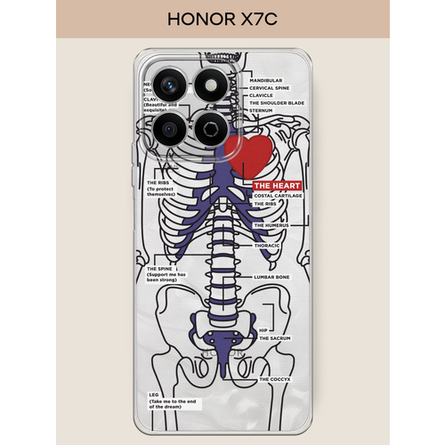 Чехол на Honor X7c / Хонор X7c с принтом Скелет человека, прозрачный