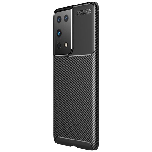 Чехол панель-бампер MyPads для Samsung Galaxy S21 Ultra из тончайшего и прочного силикона с матовой отделкой «под карбон» черная