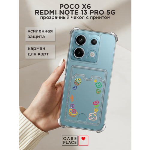 Чехол на Poco X6/Redmi Note 13 Pro 5G (Поко Х6/Сяоми Редми Нот 13 Про 5G) с картой и принтом Милый корейский чехол