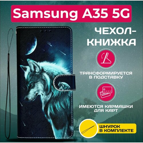 Чехол книжка wallet case для Samsung A35 5G / Самсунг А35 5G с рисунком (Волк)