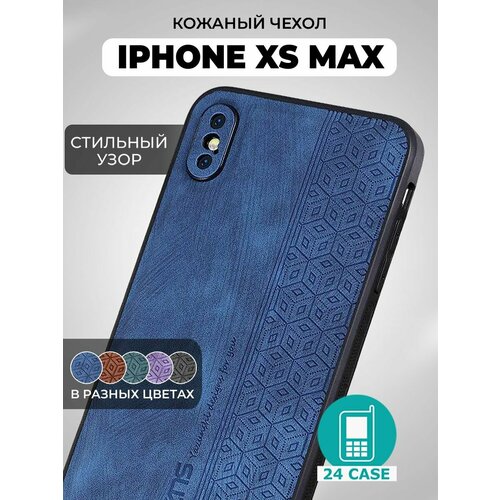 Чехол на IPhone XS Max с принтом на Айфон XS max / Айфон хс макс защитная кожаная накладка с узором (темно-синий)