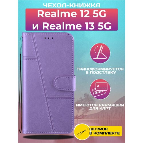 Чехол книжка wallet case на Realme 12 5G и Realme 13 5G / Реалми 12 5G и Реалми 13 5G (Сиреневая)