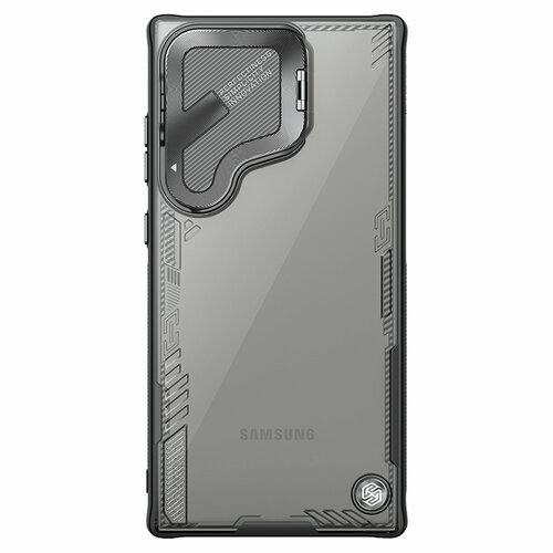 Чехол прозрачный тонированный (Dark night black) от Nillkin с металлической откидной крышкой для камеры на Samsung Galaxy S24 Ultra, серия Iceblade Prop Case