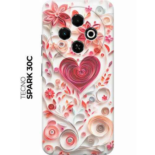 Силиконовый чехол на Tecno Spark 30C с принтом "Сердце и цветы"