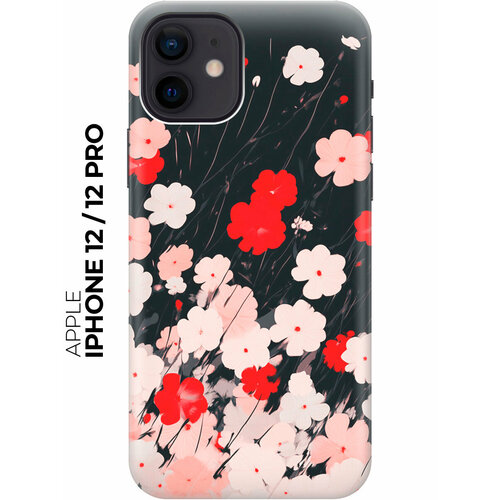 Силиконовый чехол на Apple iPhone 12 / 12 Pro с принтом "Бело-красные цветы"