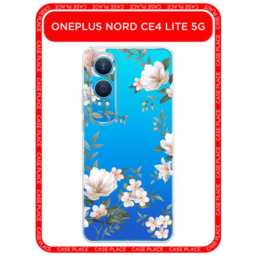 Чехол на OnePlus Nord CE4 Lite 5G / Ван Плас Норд СЕ 4 Лайт 5G с принтом Beautiful white flowers, прозрачный