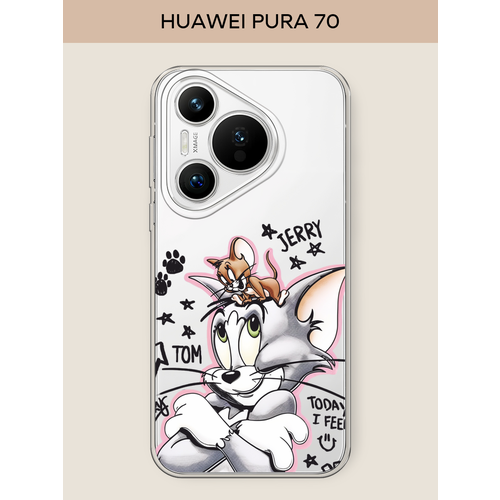 Силиконовый чехол "Том и Джерри рисунок 2" на Huawei Pura 70 / Хуавей Пура 70, прозрачный
