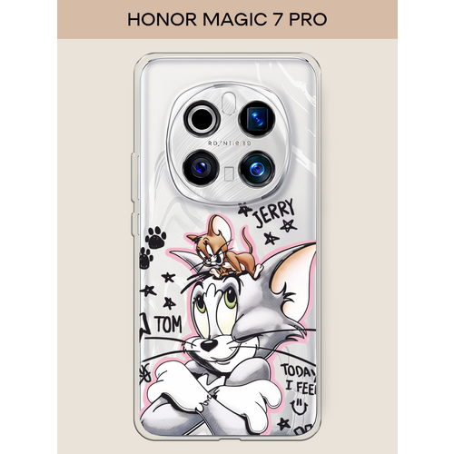 Силиконовый чехол "Том и Джерри рисунок 2" на Honor Magic 7 Pro / Хонор Мэджик 7 Про, прозрачный