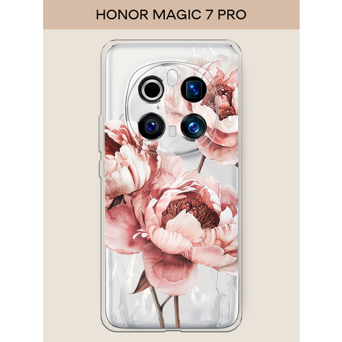 Силиконовый чехол "Акварельные бутоны" на Honor Magic 7 Pro / Хонор Мэджик 7 Про, прозрачный