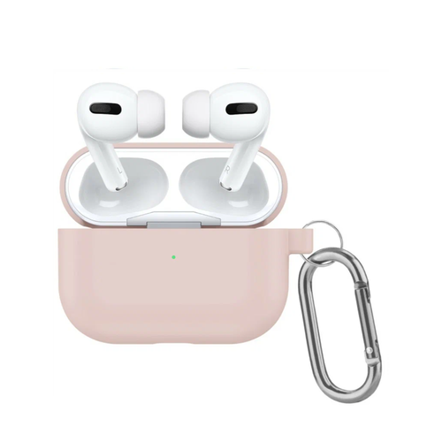 Чехол силиконовый для наушников Airpods Pro 2, с карабином, песочно-розовый