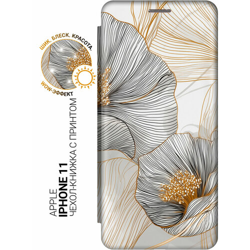 Чехол-книжка на Apple iPhone 11 с принтом "Волшебный танец света в лепестках" золотой