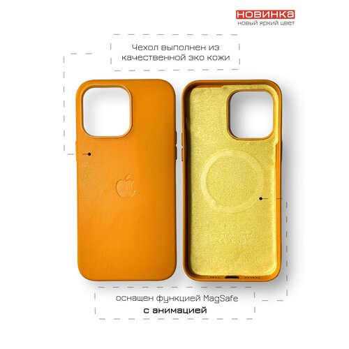Чехол кожаный для iPhone 14 Pro, Leather Case, с поддержкой беспроводной зарядки, цвет ярко - оранжевый