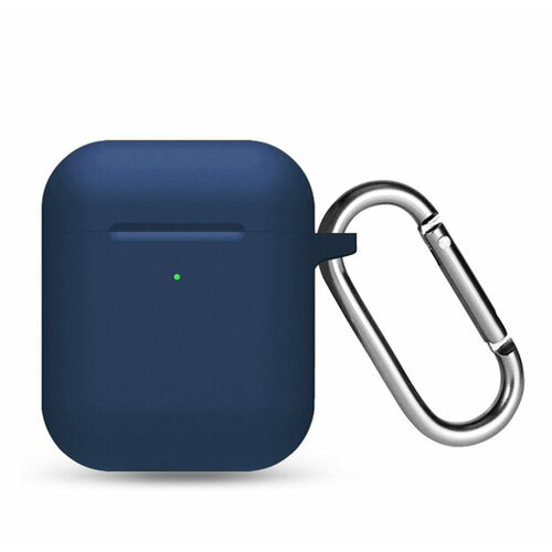 Темно синий силиконовый чехол для Apple AirPods с карабином Soft-touch Case