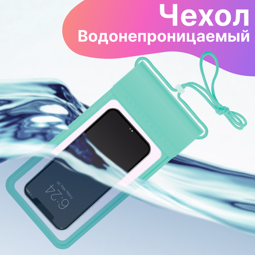 Водонепроницаемый чехол для телефона со шнурком / Непромокаемый чехол для подводной съемки / Зеленый