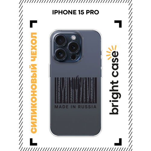 Чехол на Apple iPhone 15 Pro / Айфон 15 Про с принтом Черные березы Made in Russia, прозрачный