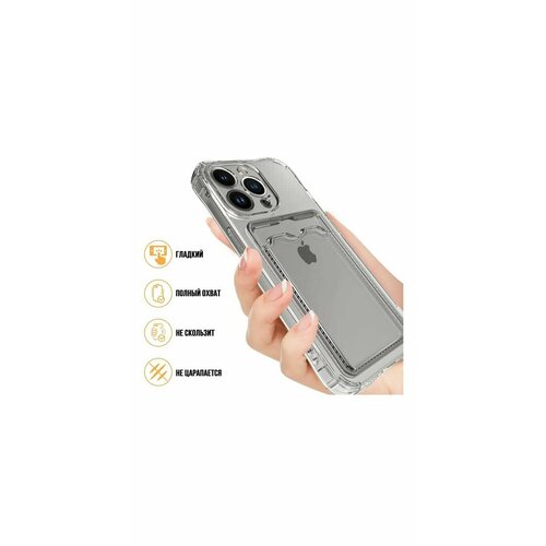 Силиконовый, прозрачный с кармашком чехол на iphone 13 pro (айфон 13 про )