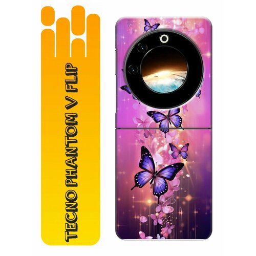 Чехол для Tecno Phantom V Flip 5G с принтом Красивые бабочки (Техно Фантом В Флип 5G)