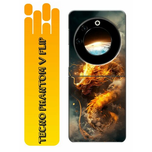 Чехол для Tecno Phantom V Flip 5G с принтом Золотой дракон (Техно Фантом В Флип 5G)