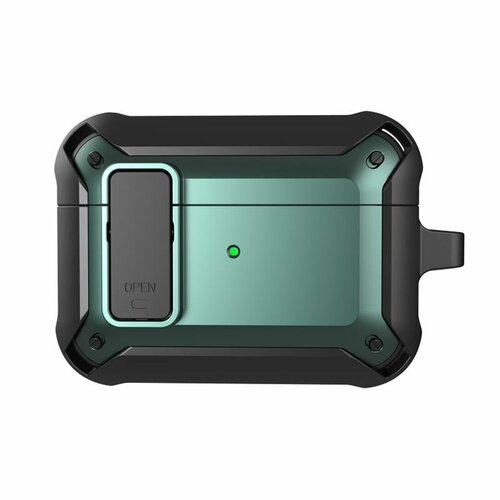 Противоударный чехол-бампер WIWU Mecha для AirPods Pro / Эирподс про / Защитный кейс с кнопкой, Цвет Зеленый