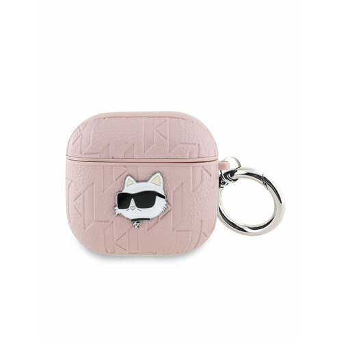 Lagerfeld для Airpods 4 чехол PU Saffiano Monogram with ring NFT Metal Head Choupette Pink