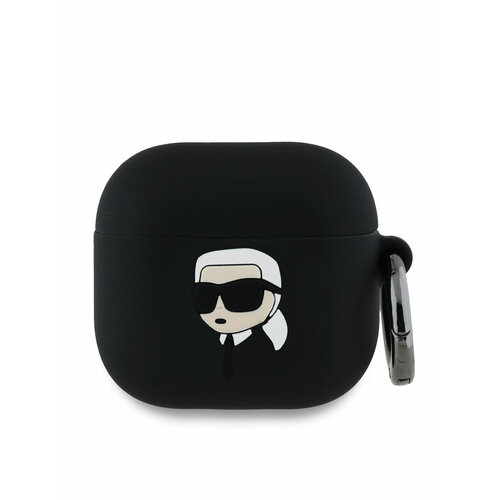 Lagerfeld для Airpods 4 чехол Silicone case with ring NFT 3D Karl Black