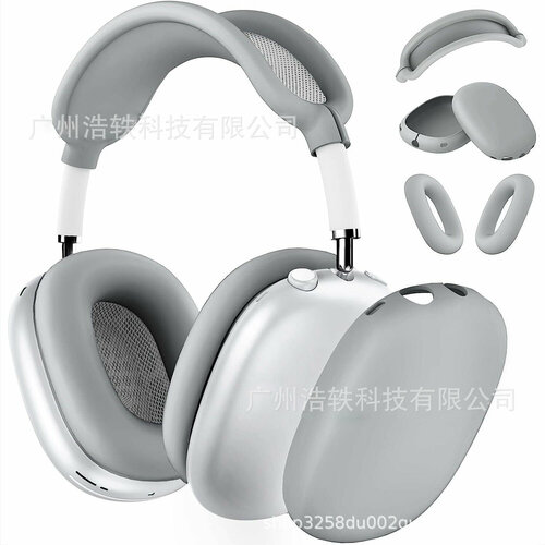 Чехол для наушников, для Apple Airpods Max, силикон, прозрачный, серебристый, комплект из трех частей