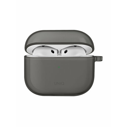 Uniq для Airpods 4 чехол Glase TPU case with carabin Smoke Grey