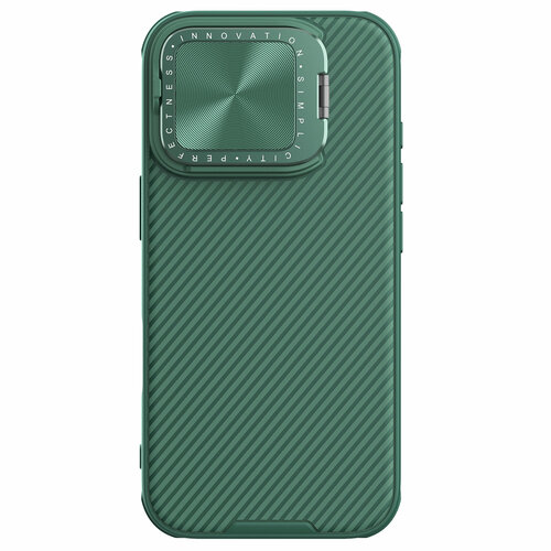 Чехол зеленого цвета (Dark Green) от Nillkin с металлической откидной крышкой для камеры на iPhone 16 Pro, серия CamShield Prop Case