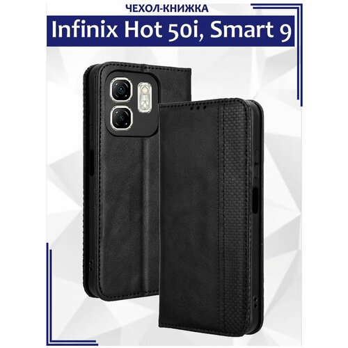 Чехол книжка для Infinix Hot 50i, Smart 9 с магнитом и отделением под карты / Хот 50i, Смарт 9 (черная)