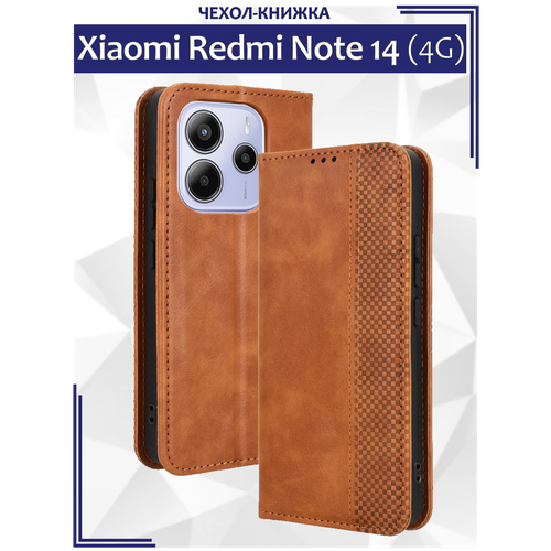 Чехол книжка для Xiaomi Redmi Note 14 (4G) с магнитом и отделением под карты / Сяоми Редми Ноут 14 4G (коричневая)