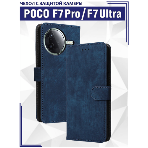 Чехол книжка для Poco F7 Pro/ Poco F7 Ultra c магнитной застежкой / Поко Ф7 Про, Ф7 Ультра c отделением под карты (синяя)