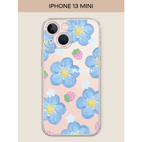 Силиконовый чехол "Цветы и клубники" на Apple iPhone 13 mini / Айфон 13 mini, прозрачный