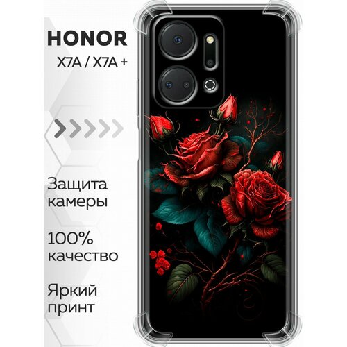 Дизайнерский силиконовый с усиленными углами чехол для Хонор Х7а / Huawei Honor X7a Розы красные