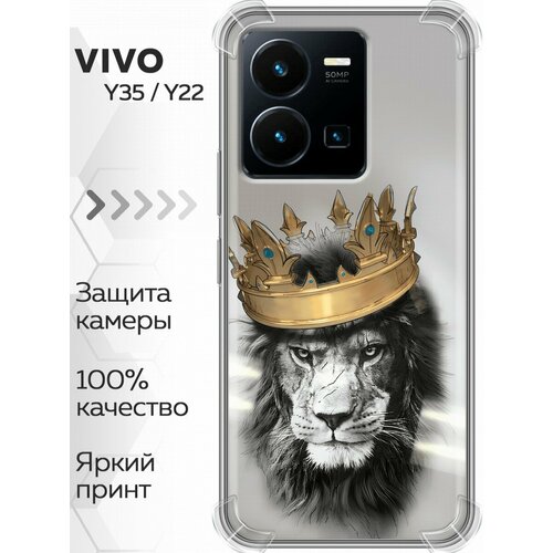Дизайнерский силиконовый с усиленными углами чехол для Виво У22 / Vivo Y22 Лев с короной
