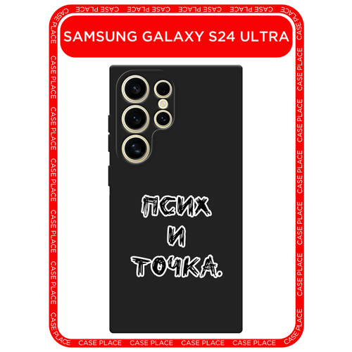 Черный матовый чехол на Samsung Galaxy S24 Ultra / Самсунг S24 Ultra с принтом Псих и точка черный