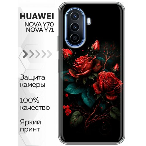 Дизайнерский силиконовый чехол для Хуавей Нова У70 / Huawei Nova Y70 Розы красные