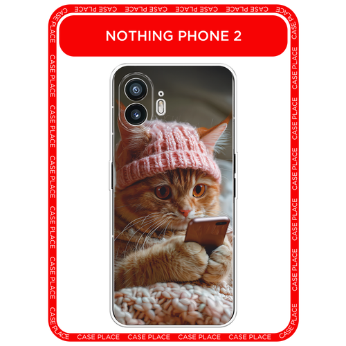 Чехол на Nothing Phone 2 / Нафинг Фон 2 с принтом Рыжий котик с телефоном