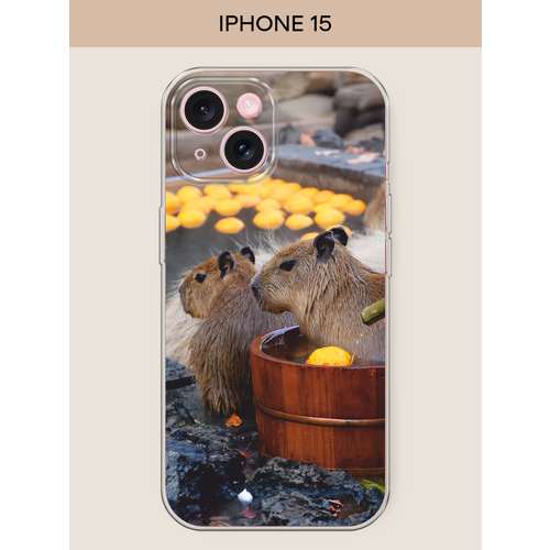Силиконовый чехол "Капибары отмокают" на Apple iPhone 15 / Айфон 15