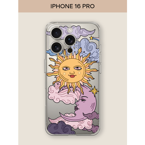 Силиконовый чехол "Sun and Moon" на Apple iPhone 16 Pro / Айфон 16 Про, прозрачный