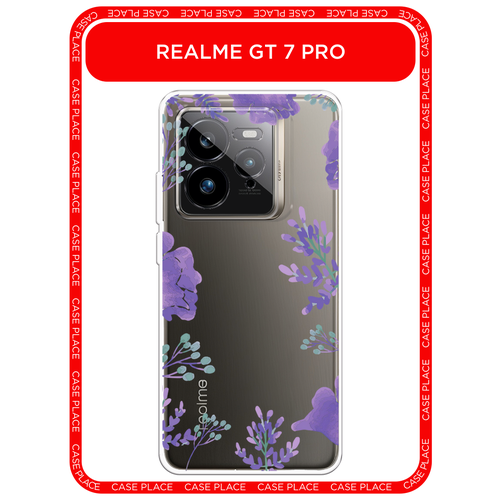 Чехол на Realme GT 7 Pro / Реалми GT 7 Про с принтом Сиреневая цветочная рамка, прозрачный