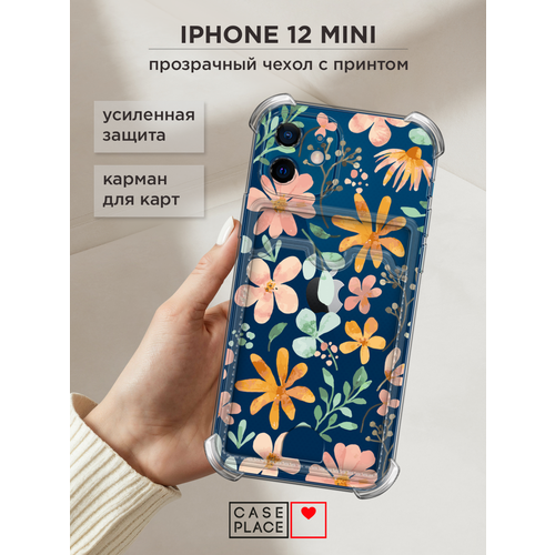 Чехол на Apple iPhone 12 mini (Айфон 12 Мини) с картой и принтом Цветочки и стебли