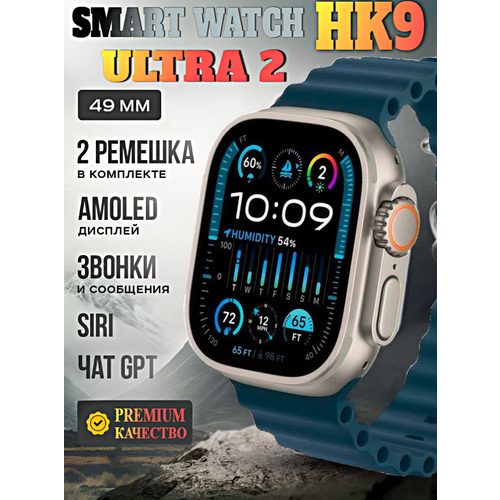 Смарт часы HK9 ULTRA 2 Умные часы PREMIUM Smart Watch AMOLED, iOS, Android, ChatGPT, Bluetooth звонки, Темно-бирюзовый