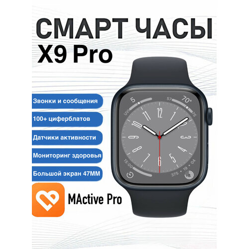 Умные часы X9 pro MActivePro Смарт часы Amoled iOS Android уведомления, звонки, черные