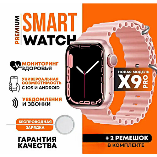 Смарт часы Х9 pro / Умные часы 2023 AMOLED экран Smart Watch 45 mm, звонки по Bluetooth, 2 ремешка, розовые