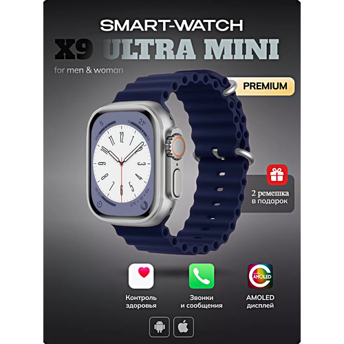 Cмарт часы X9 ULTRA MINI Умные часы PREMIUM Series Smart Watch AMOLED, iOS, Android, Bluetooth звонки, Темно-синий