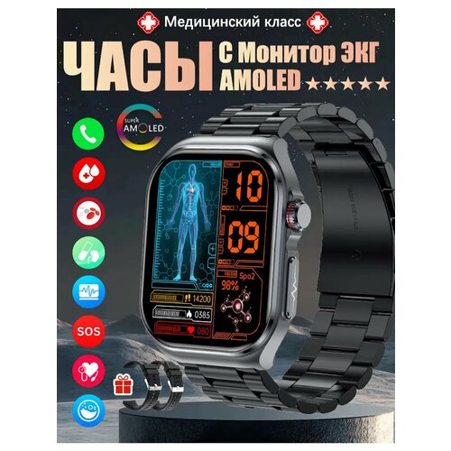 Cмарт часы SK50 Умные часы PREMIUM Series Smart Watch AMOLED, iOS, Android, 2 ремешка, Bluetooth звонки, Черный