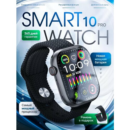 Умные часы 10 PRO Smart Watch, Смарт-часы 2025, 2.02 AMOLED экран, iOS, Android, Bluetooth звонки, Черный