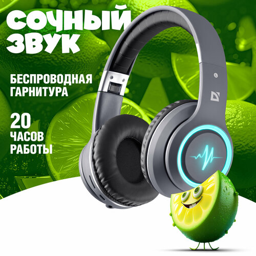 Наушники беспроводные большие Defender FreeMotion 571, Bluetooth 5.3, microSD, MP3 плеер, AUX кабель, серый, LED подсветка